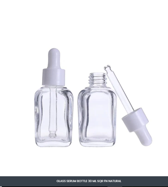 GLASS SERUM BOTTLE 30 ML SQR FN NATURAL MOQ-100